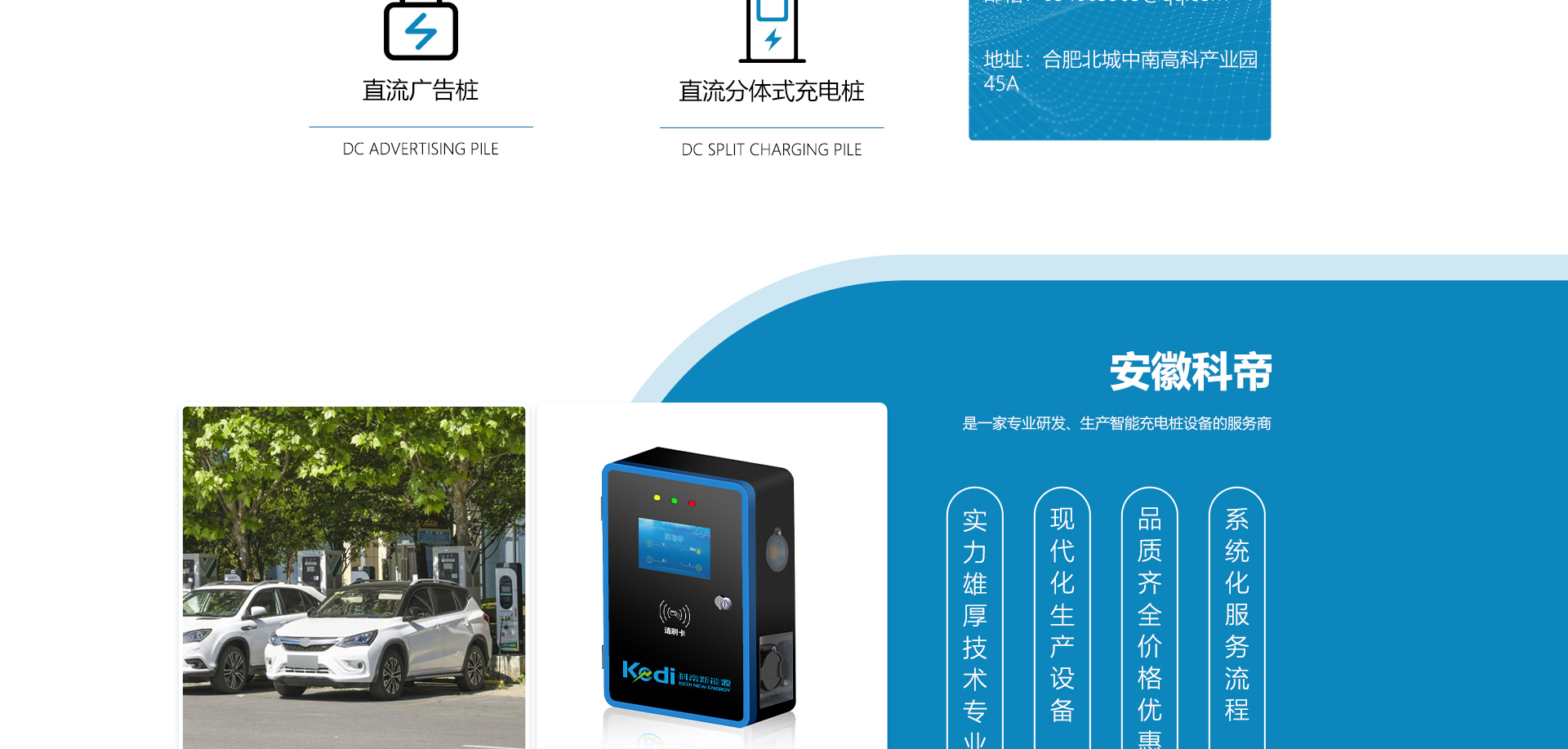 關于我們安徽科帝新能源科技有限公司坐落于安徽省會-合肥,是一家研發(fā)、生產智能充電樁設備,汽車充電站后臺監(jiān)控管理系統(tǒng)和生產高壓開關設備的企業(yè).由專門的研發(fā)團隊、管理團隊按照現(xiàn)代化企業(yè)制度規(guī)范設立的有限責任公司。致力于為能源智能、安全的應用和節(jié)能減排提供整體的技術與產品解決方案。科帝集研發(fā)、設計、生產、銷售以及服務于一體,在電動汽車充電方案,充電設施建設和城市配電方面擁有廣泛的技術研究及經驗積累,為客戶提供安全、智能的充電設備及充電運營站建設一體化解決方案。并堅持以人為本、質量為先、顧客至上、不斷創(chuàng)新”的企業(yè)理念,為能源行業(yè)的發(fā)展、節(jié)能減排做出重大的貢獻。公司擁有豐富的產品種類,目前科帝已研發(fā)生產了三十多種產品,充電設備有直流一體式充電樁、直流分體式充電樁、直流廣告樁、交流廣告樁、廣告一體樁、壁掛交直流樁;等多種充電設備;每一款產品都是精心打造,力求為客戶提供優(yōu)越的用戶體驗。展望未來科帝將通過持續(xù)的自...
